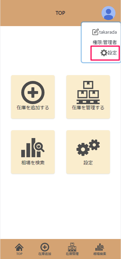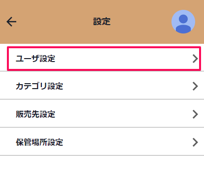 1. 画面右上のユーザプロファイルをタップ>設定をタップ
