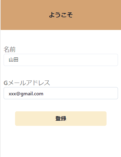 2. 名前とGoogleアカウントにログインできるメールアドレスを入力し、登録ボタンを押してください