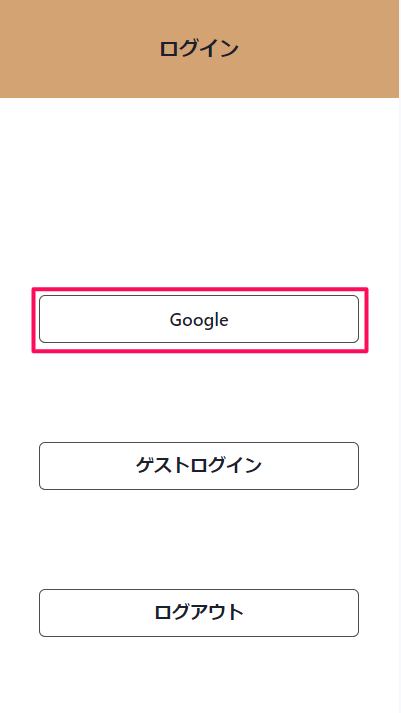 4. Googleボタンをタップし、先ほど登録したメールアドレスが登録されているGoogleアカウントでログインしてください